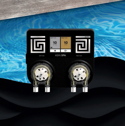 Aseko ASIN SPA: kombinácia dvoch dávkovacích peristaltických čerpadiel umožňuje pokročilú údržbu bazénovej vody s výhodou presného dávkovania prípravkov pre bazény a vírivky. V spojení so správne zvoleným filtračným systémom je možné dosiahnúť najnižšiu účinnú koncentráciu chemikálií, čím sa minimalizujú škodlivé účinky dezinfekčných prostriedkov vo vyšších koncentráciach.
